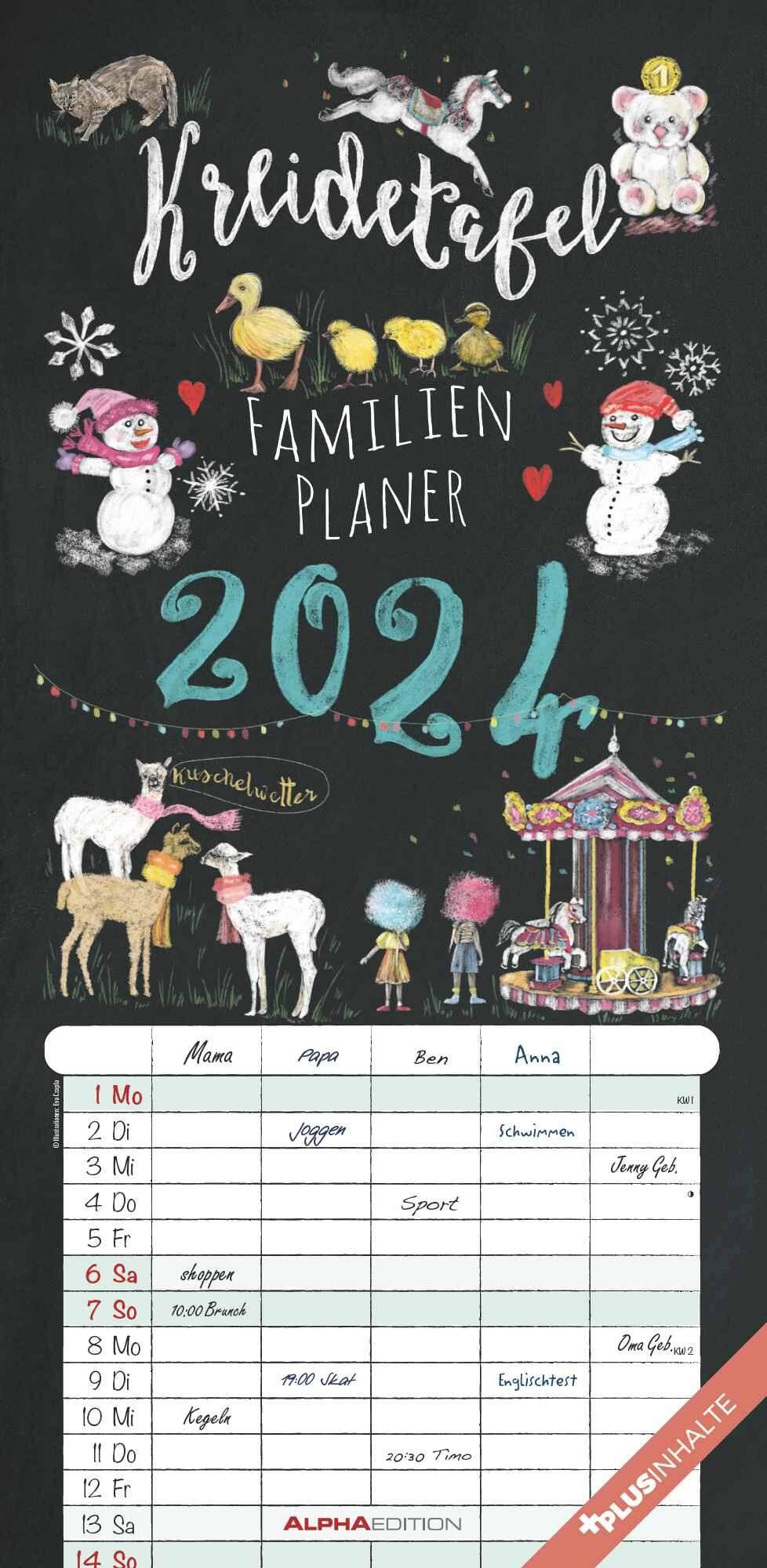Kreidetafel Familienplaner 2024 Familienkalender 22×45 cm 5